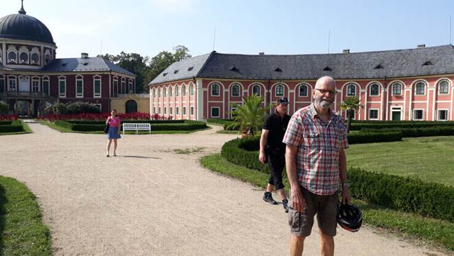 One major hill that took us by surprise. Rapid change down caused my chain to jump off the cogs. Made it to Decin trouble free but found that the Wellness Spa at Zlata Lipa where we had booked in was a bit of a challenge. One point five km off the path, no problem, but 150 metres up?! Recuperated in the beer garden while we waited to be allowed to check in at 2pm. After enjoying the facilities we got the bus back down to town, had a tasty Indian meal in the town square, then bus back again.