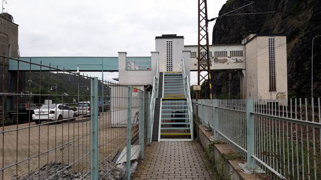 Not much was impressive after that. A very industrial landscape. Overcast day didn't help the impression. Approaching the town we were surprised to find a sign that said that the bike path went under the railway line via half a dozen steps, then over the loch via more steps. The alternative was to take the busy road.