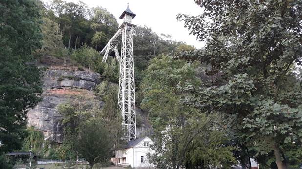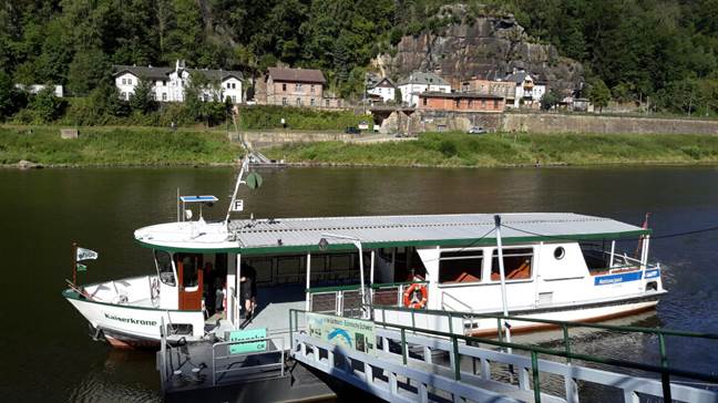 The walk down was almost as testing. Returned on the ferry, made it to Bad Schandou and collapsed in our room. Which was not in Bad Schandau as advertised, but Krippen. A short ferry ride across the river and up a bit to the city. Pleasant dinner there, went up the observation tower (with a lift), then a half hour wait for the ferry back to our room.