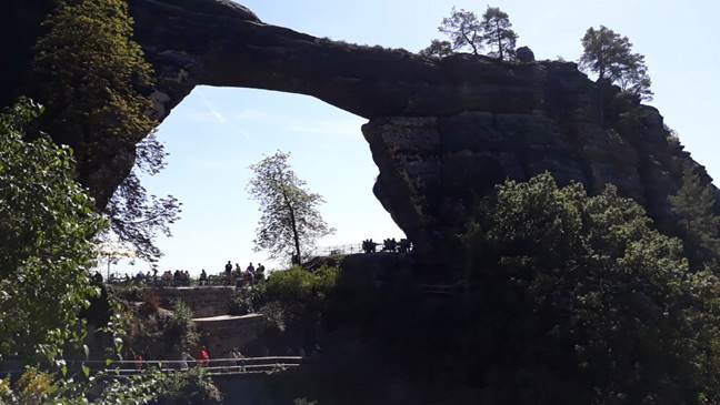 Knowing it was not a good idea when we had our longest ride the next day, we nevertheless took the walk up to Pravcicka Brana. Left the bikes at the start of the walking trail as there were a lot of other bikes there, all with their panniers attached. Probably a bit of a risk. Took the best part of an hour to walk to the top. About 300 metre climb.